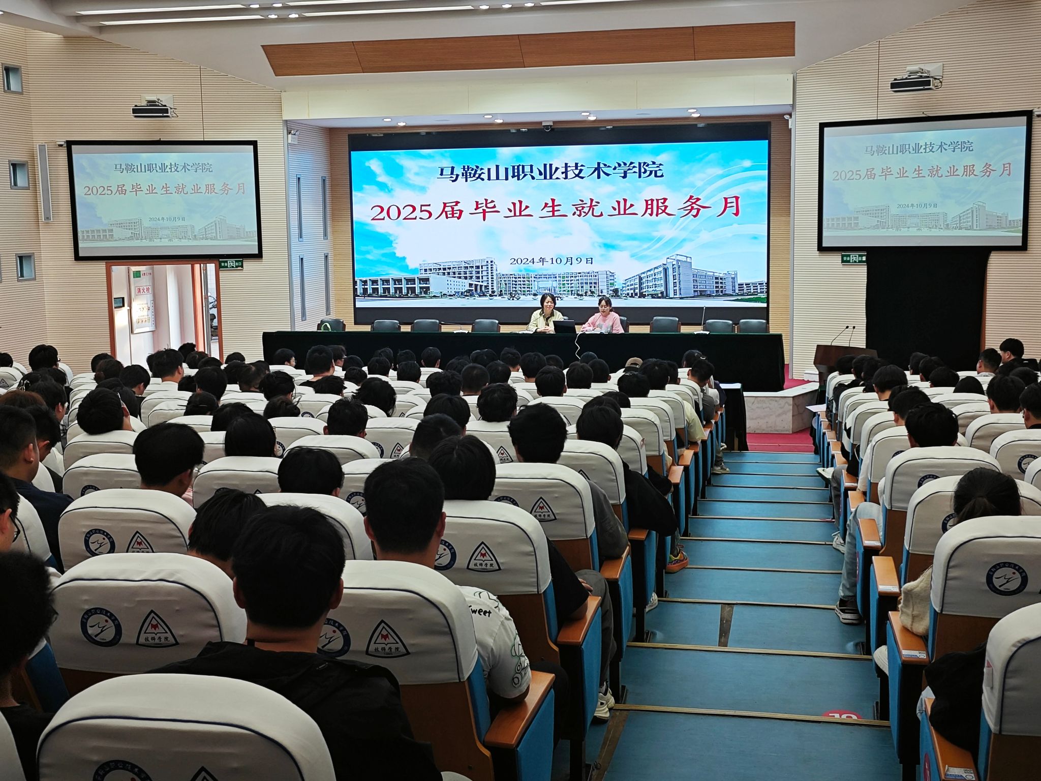 为积极引导毕业生留马就业,帮助毕业生树立正确的择业观,10月9日下午,学院组织开展2025届毕业生“就业服务月”系列活动之留马就业讲座。讲座邀请到马鞍山市人才综合服务中心高校毕业生服务科科长陈霞,马鞍山振辉食品有限公司人力资源部经理、高级劳动关系协调员仝静主讲,400余名2025届毕业生参会。