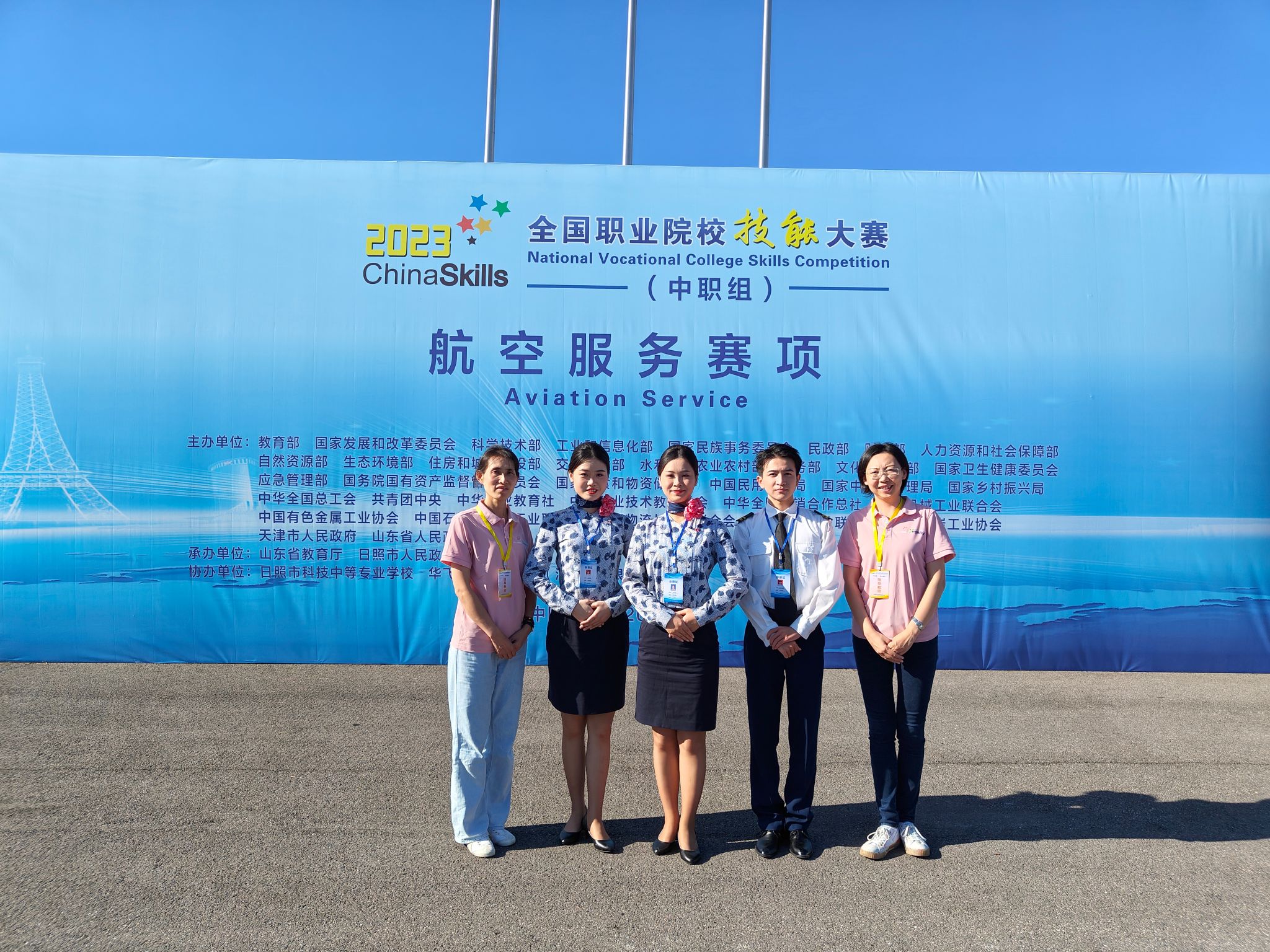 9月21日,2023年全国职业院校技能大赛(中职组)航空服务赛项在山东日照市落下帷幕。我院应用外语系航空服务专业朱兴浩冉、肖梦雅、马晓庆三位同学代表安徽省参赛荣获团体二等奖(指导教师:杨莲 唐莉)。