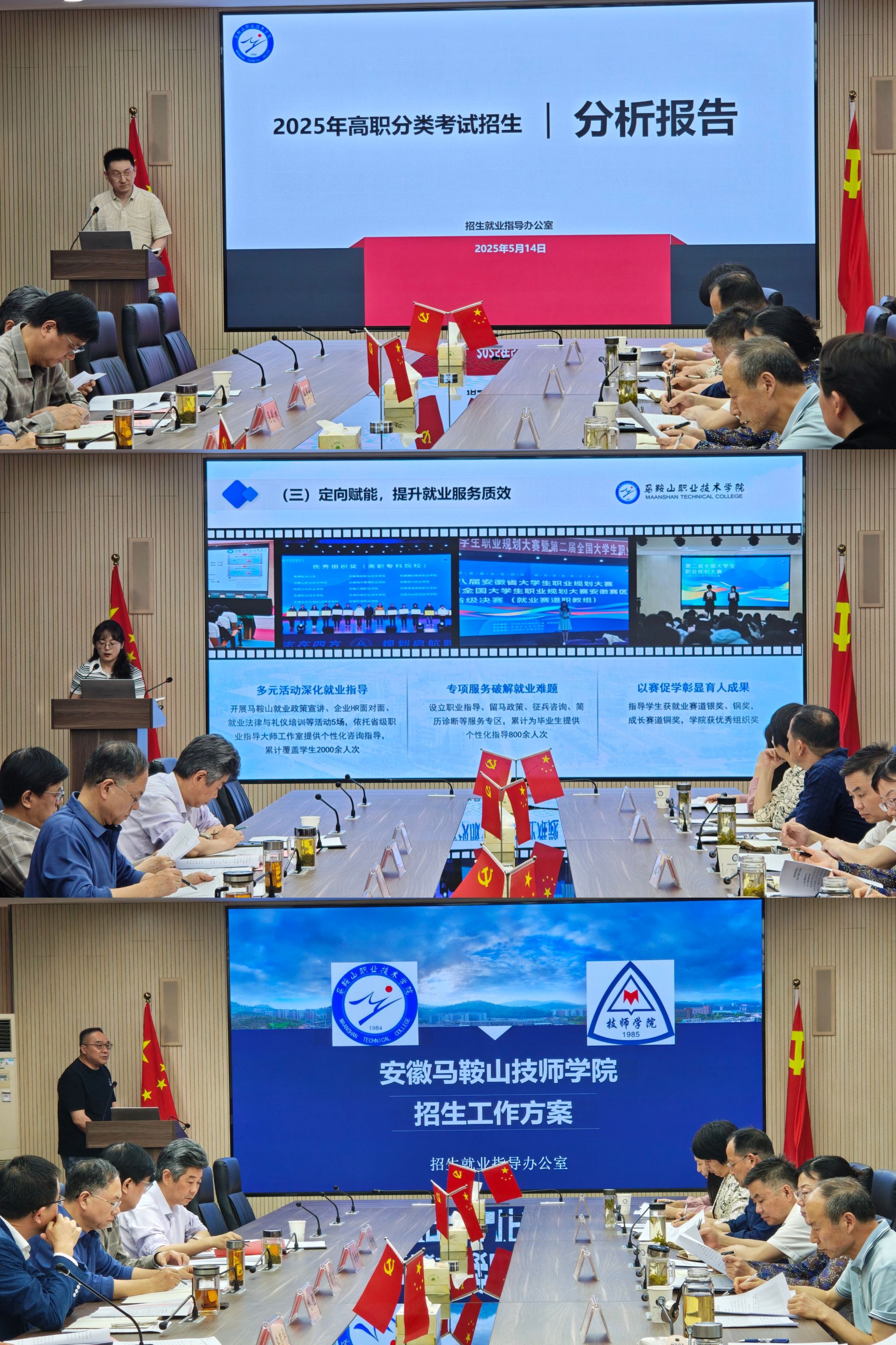 会上,招生就业办公室全面汇报了学院2025年分类考试招生情况、2025年就业工作进展及安徽马鞍山技师学院招生工作方案,并围绕2025年中职招生宣传工作展开专题动员,对下一阶段招生就业重点任务进行了部署。
